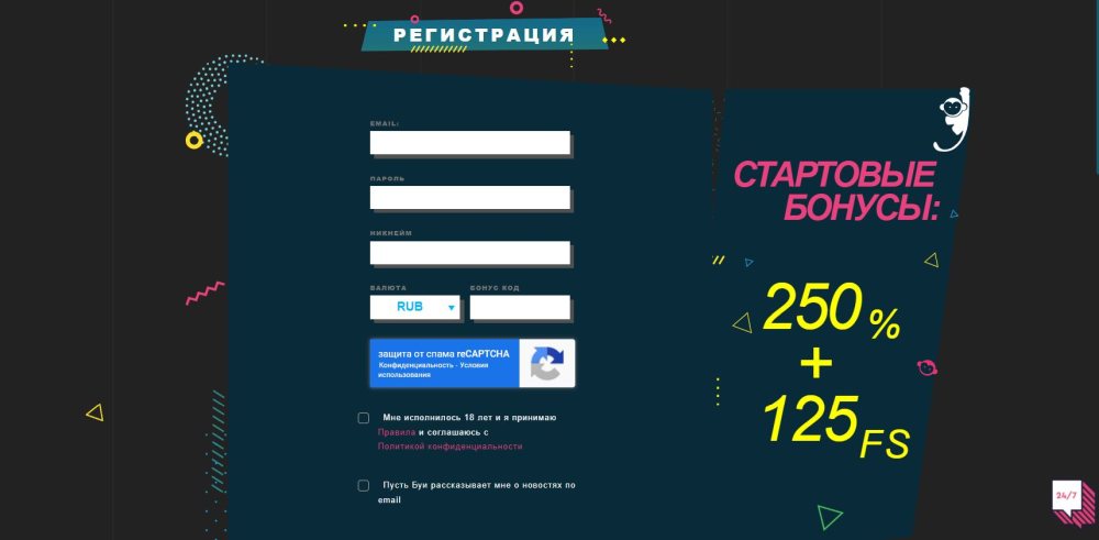 В каждом из предложенных вариантов, пользователи онлайн-казино вводят активный промокод и выбирают специальный бонус после регистрации. Подтверждая корректность введенных данных и нажимая кнопку «Зарегистрироваться», игроки дают соглашаются с правилами компании Booi.